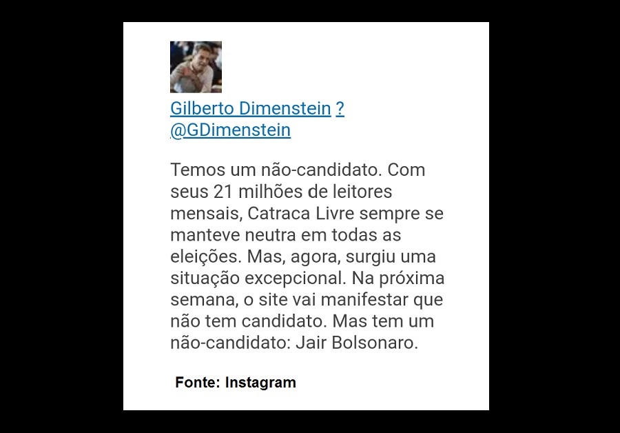 É de fontes assim que vem a grana preta que sustenta o CatracaLivre do Sr. Dimenstein. É com seu dinheiro, meu dinheiro, nosso dinheiro que o CatracaLivre anti-Bolsonaro se sustenta.